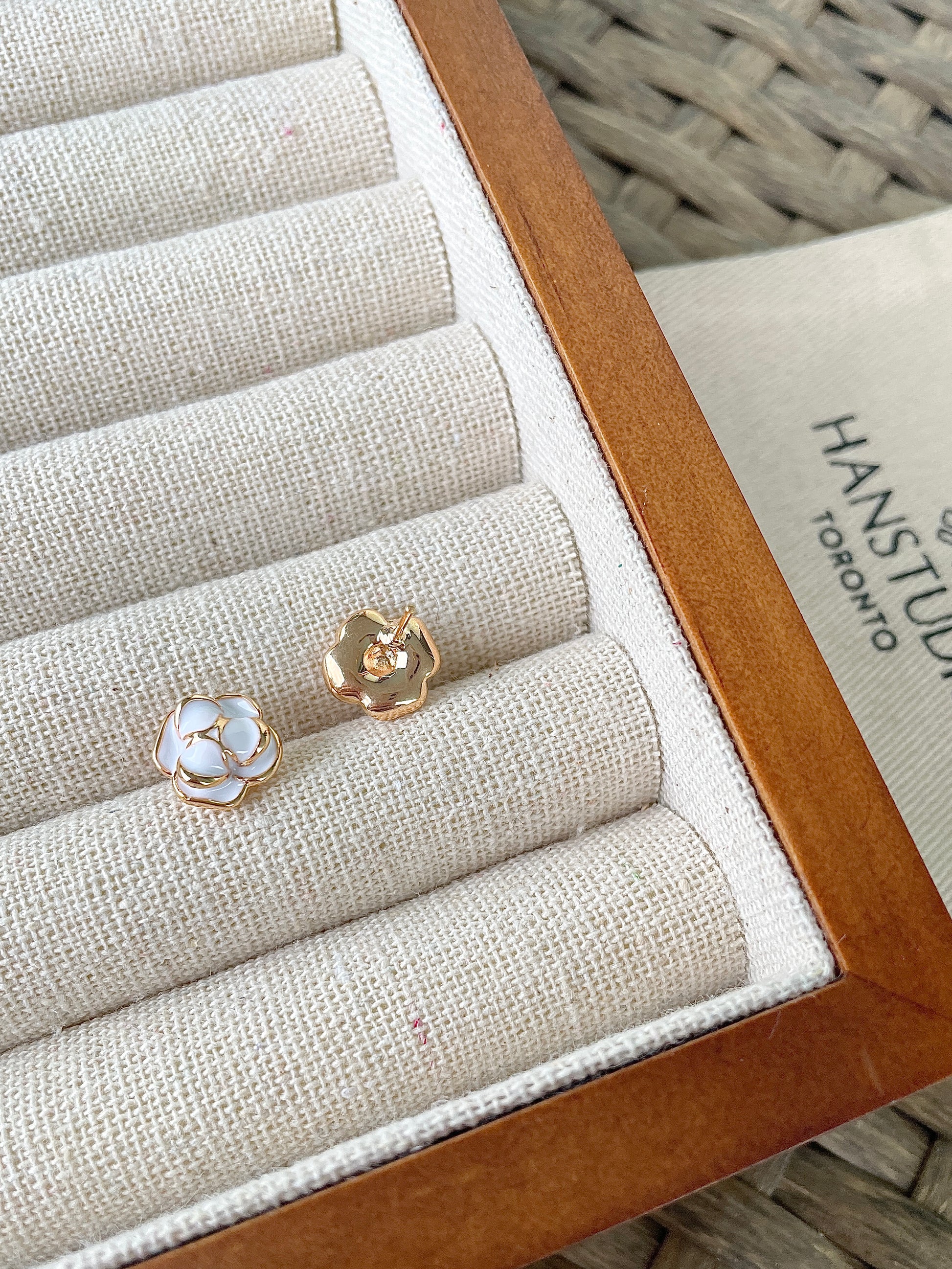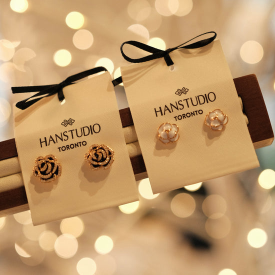 The flower market inspires the tiny Camellia Earrings. Vintage and elegant in the French way.